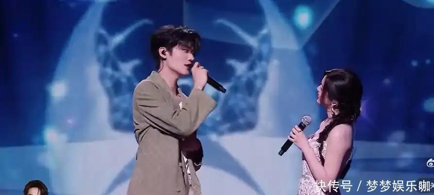 舞台对唱环节更是将甜度推至顶峰。作为全场唯一的CP双人表演,两人合唱了《狙击蝴蝶》的OST《早安晚安》,这首早在2025年12月上线就引爆腾讯音乐平台的歌曲,此次舞台首唱让剧粉集体“DNA动了”。表演中,两人随着旋律完成华尔兹转圈,陈妍希在灯光转暗的瞬间自然将头轻靠在周柯宇肩头,周柯宇同步展露宠溺微笑,身体微微前倾配合,话筒随动作轻轻晃动的细节,被网友调侃“像暗爽的小狗”。副歌部分,他们默契比出剧中经典的蝴蝶手势,贴耳低语“Daniel Yeah”的互动复刻角色情感,温润女声与清澈少年音的完美契合,将“早安晚安”的缱绻意境演绎得淋漓尽致,结尾牵手鞠躬时的相视一笑,让直播间弹幕刷屏“这才是售后天花板”。